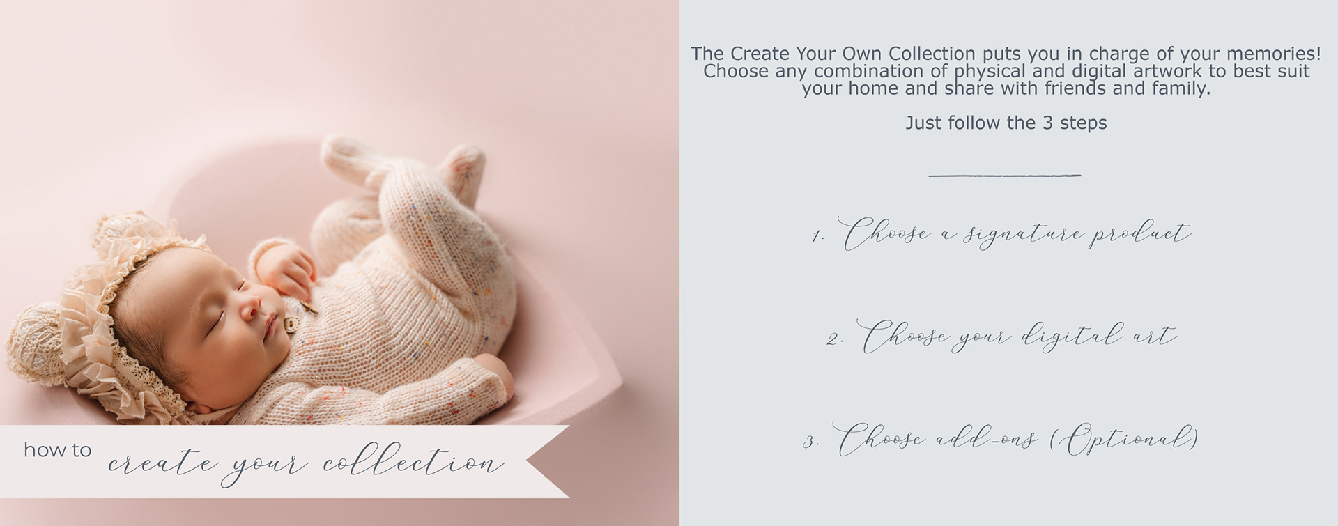 This is a three step process which allows you to customize a portrait package according to your own needs.